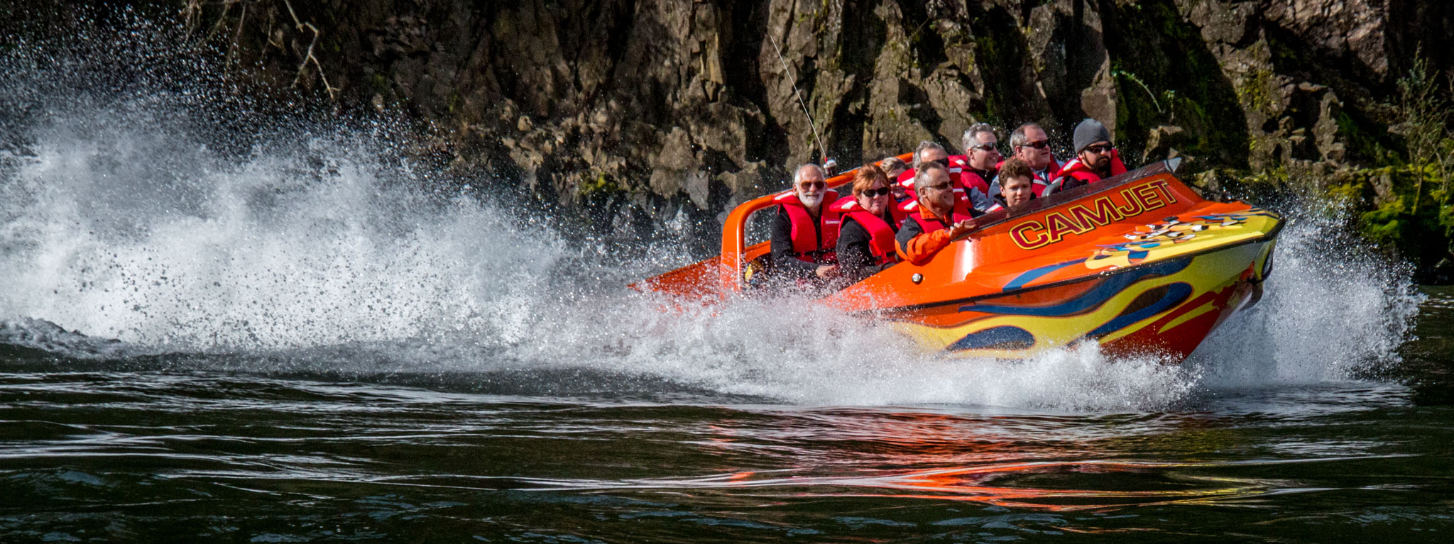 We have two 8 – 9 passenger jet boats and one 10 – 12 passenger twin V8 engine jet boat, depending on the size of the people (some people may require two seats).